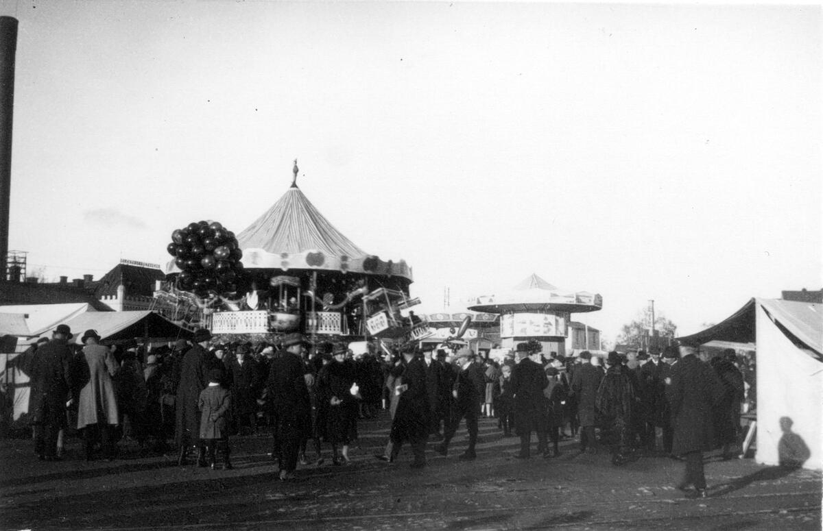 Höstmarknad. I bildens vänstra kant, elverkets skorsten.