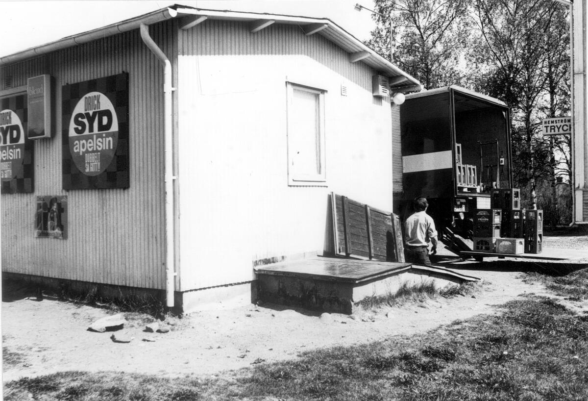 Baksidan av "Avva" Wibergs kiosk korsningen Tullportsgatan - Skarpskyttegatan