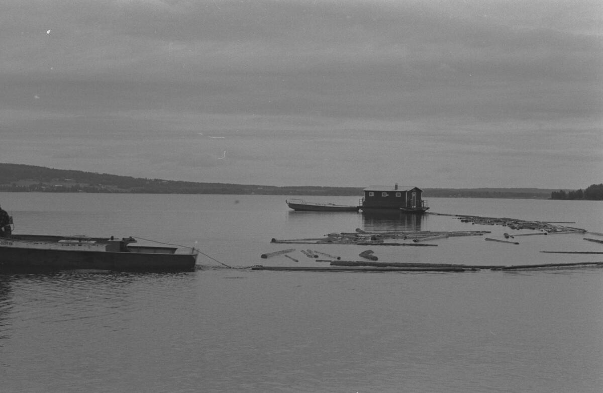 Bäckmyrviken. Motorbåten och radiostyrda båten, med husbåt, med bakläns mellan sig.