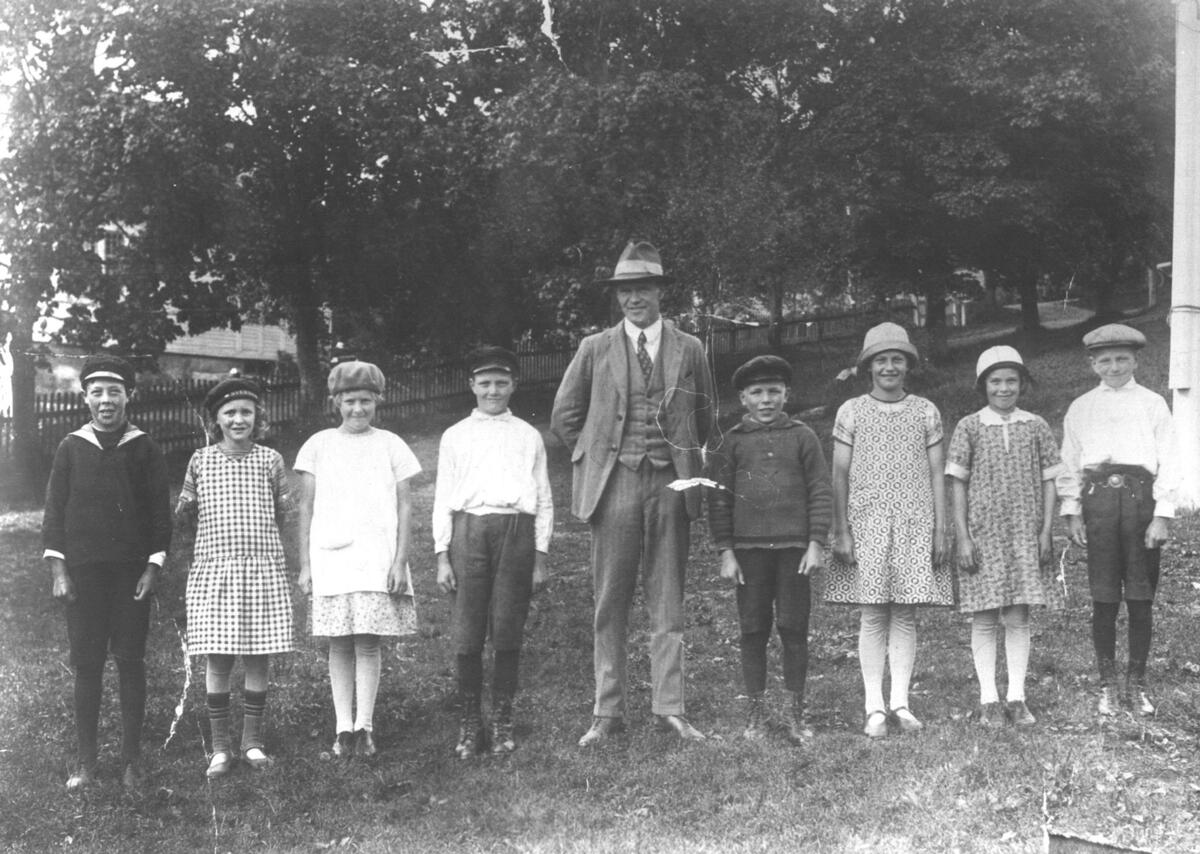 Fr.v. 1. Emil Gradin, Gallsäter. 2. Astrid Edström, Dala. 5. Lärare Olle Berglund, Kyrkbordet.