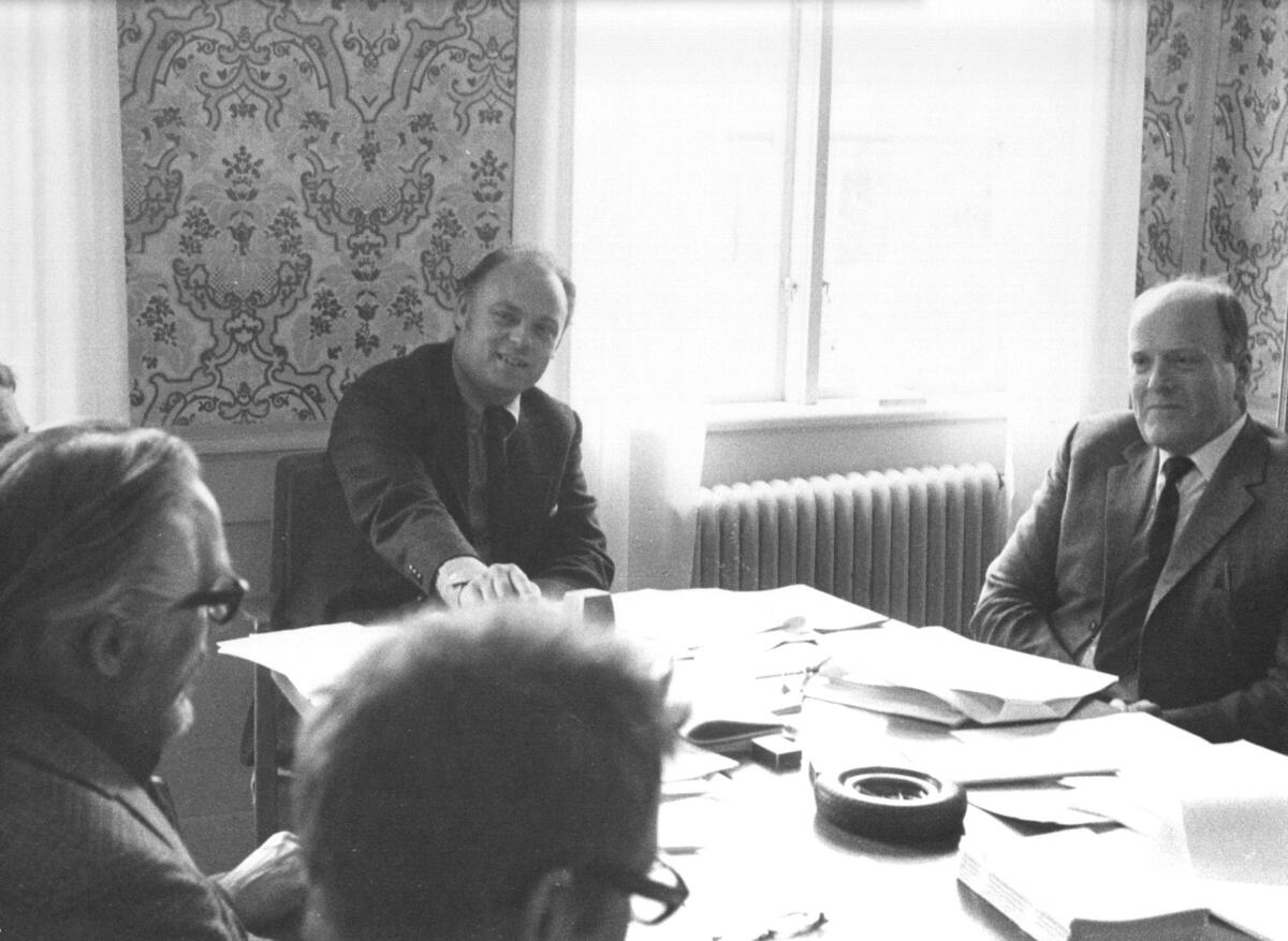 Johannisberg. Kommunstyrelsens ledamöter. Fr.v Björn Vihlson, Bollstabruk, Karl-Erik Kärrlander, Kom.styrelsens ordf. Kurt Jansson, Bollstabruk och Tage Carlsson, Väja.