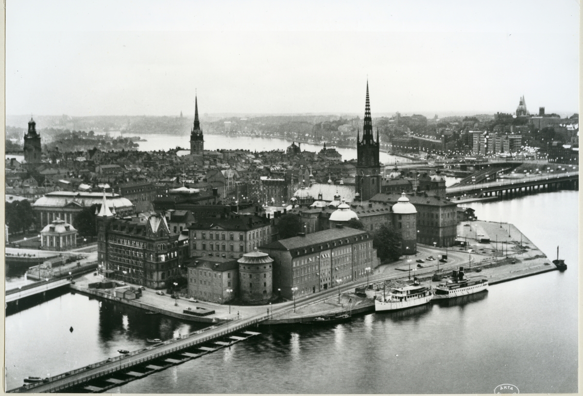 Riddarholmskajen efter pontonbrons tillkomst, 1930-talet.