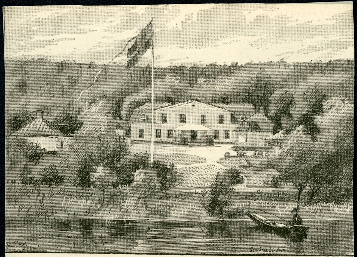 Teckning av H. Feychting från 1885, föreställande Fagersta bruksherrgård.