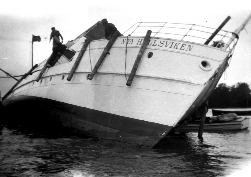 Sjöolycka, fartyget Nya Hållsviken har kantrat.
