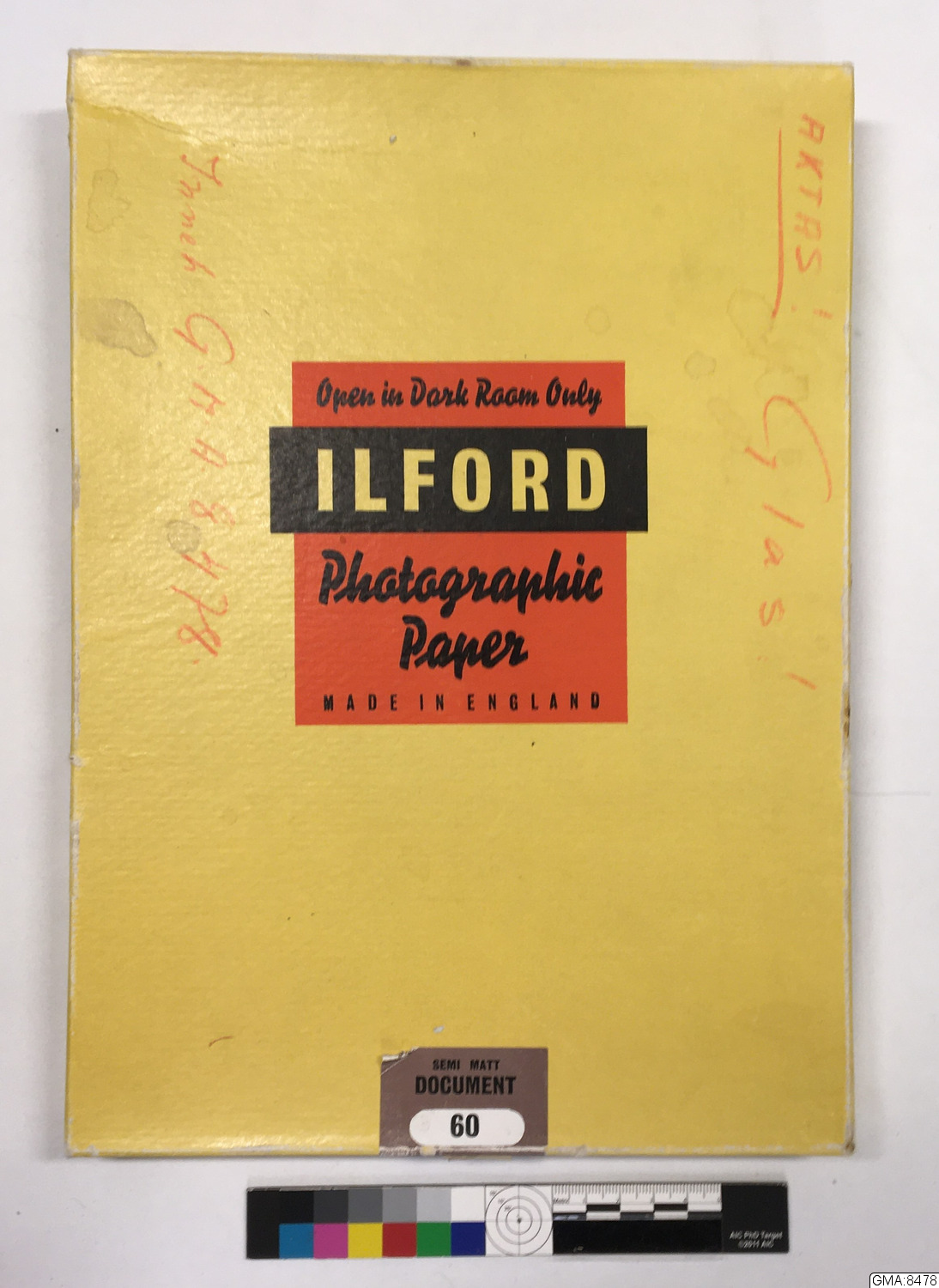 transparant fotografi på glas, förlagt a.t., visande exteriör av villan Nya Allén 96 c b i Göteborg år 1886. a.t. på lapp som löstagits: " Hans-Therese. Mottagen af fyra syskonen en vänlig helsning till julen samt detta minne från Villan-Hemmet. 1886. jul."