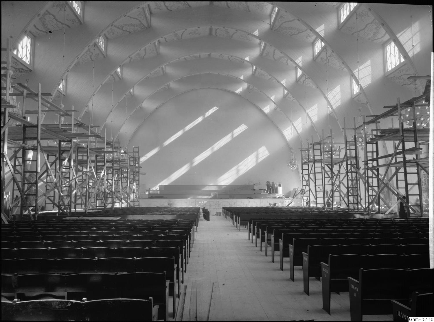 Interiör från Kongresshallen under byggnation, Lisebergs nöjesfält, Jubileumsutställningen 1923.