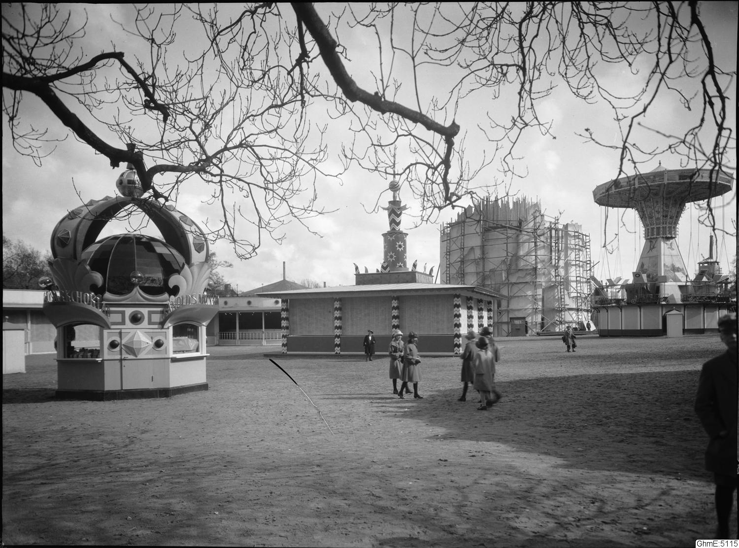 Flygkarusellen och Berg- och dalbanan bland annat på Lisebergs nöjesfält, Jubileumsutställningen 1923.