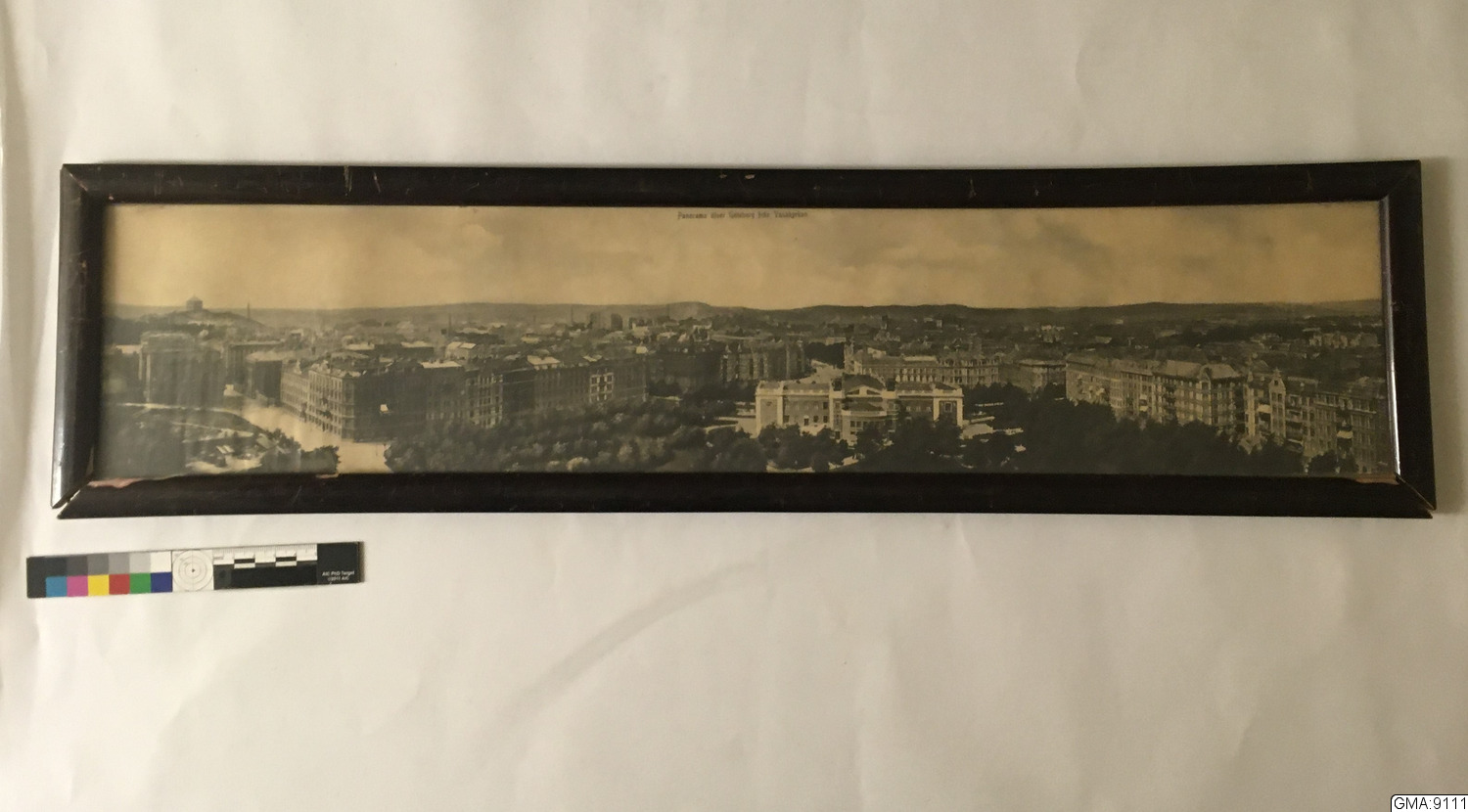 fotografi-vykort, 13 x 62 cm, "Panorama öfver Göteborg från Vasakyrkan."