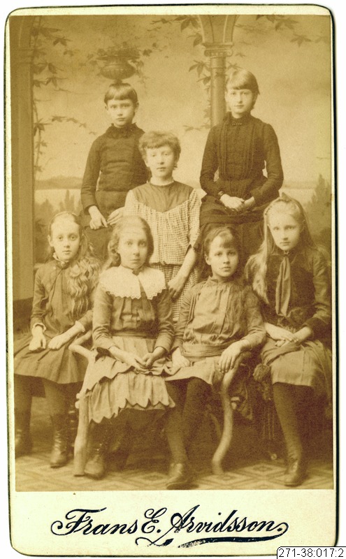 Elevporträtt av elever från Witt och Holsta pensionen, tredje klassen 1888. Klasföreståndare Clara Hellgren.