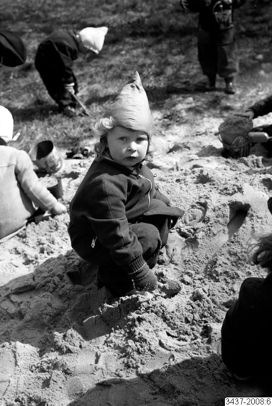 Fredrikornas barnträdgård är något alldeles nytt i sitt slag, som man starta, uppmuntrad av framgången med barnvakten i hemmet. Att idén kommit att förverkligas har man främst avlidne teol. dr. C. L. Johanssons familj att tacka för. Det är nämligen i trädgården till hans villa uppe på Öresundsparkens platå, som småttingarna håller till med sin barnträdgård. --- Barnen få leka fritt och efter behag. Något tvång att delta i den ena eller andra sysselsättningen är det inte fråga om, säger fru Björklund. Barnen äro förresten ännu för små för att ha glädje av några lekar, de äro alla i ålder mellan 2-6 år. Yngste deltagaren i barnträdgården har ännu inte två vårar på nacken, men han tycks trivas gott bland sina litet mera försiggkomna kamrater.