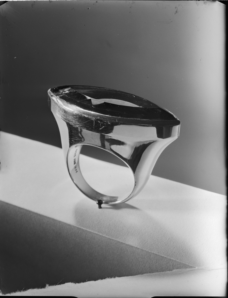 Titel: GULDRING SAMT SILVERSKÅLAR PÅ TRÄBRICKA
