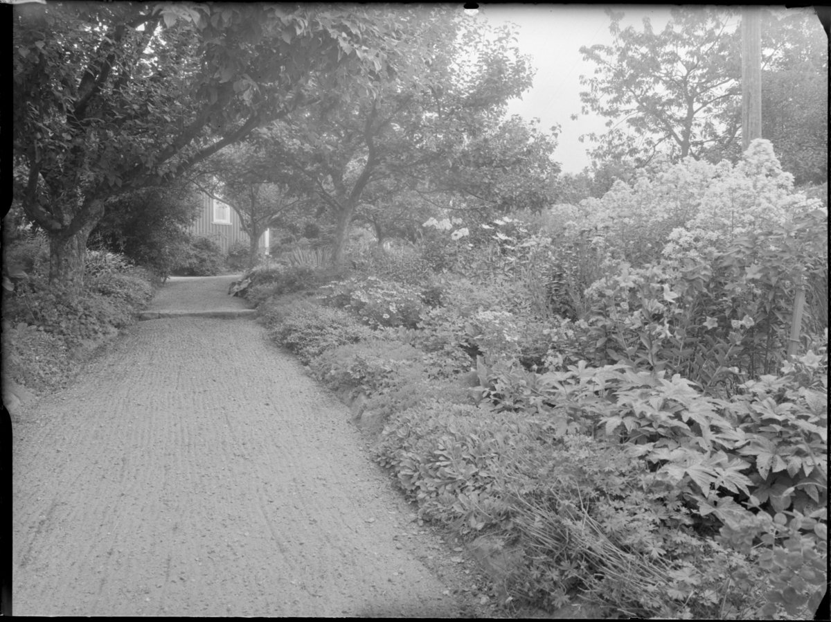TRÄDGÅRD I SKÅNE MED HÄCK OCH RÖTT LIN