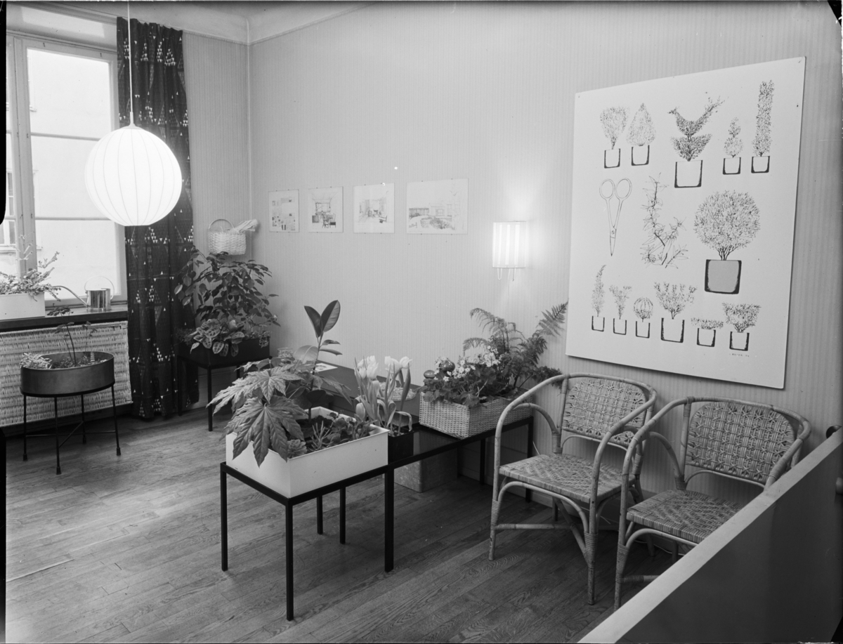 Titel: INTERIÖRER OCH DETALJ FRÅN UTST. AV BLOMSTERBORD OCH DIV. TILLBEHÖR INT.