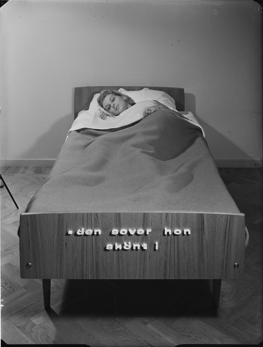 FLICKA I SÄNG FÖR ANNONS "DEN SOVER HON SKÖNT I"