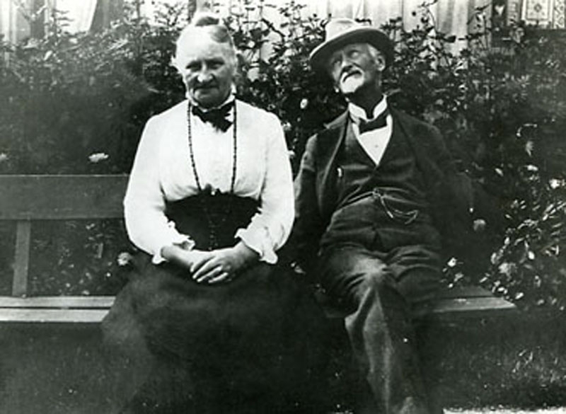 Elfrida och Edward Hansson på äldre dar en vacker sommardag 1927 i Släp.