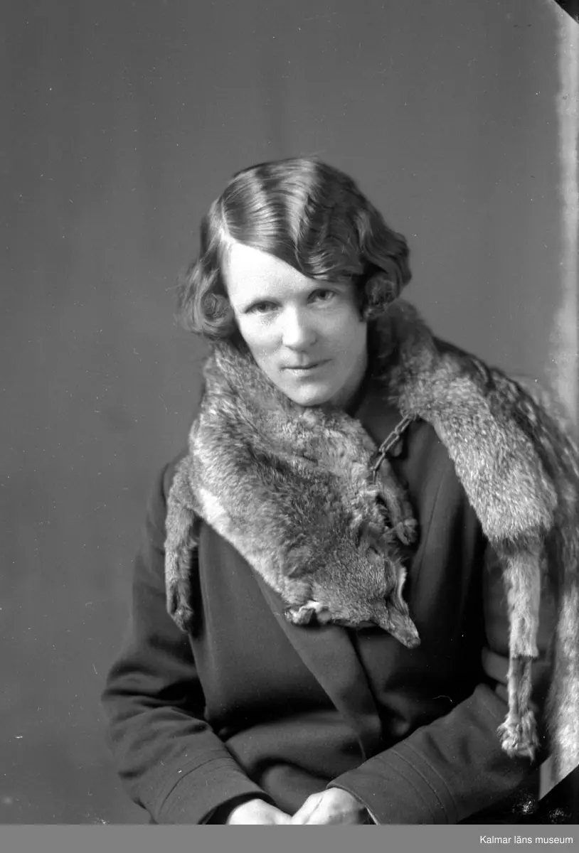 Porträtt av fru H Hagström med rävboa, kommer ifrån Kalmar.