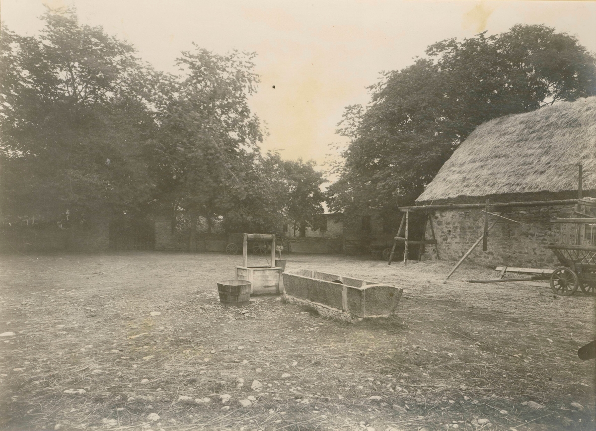 Ladugården med brunn samt drickesho av sten för kreaturen, på Galltorps säteri.