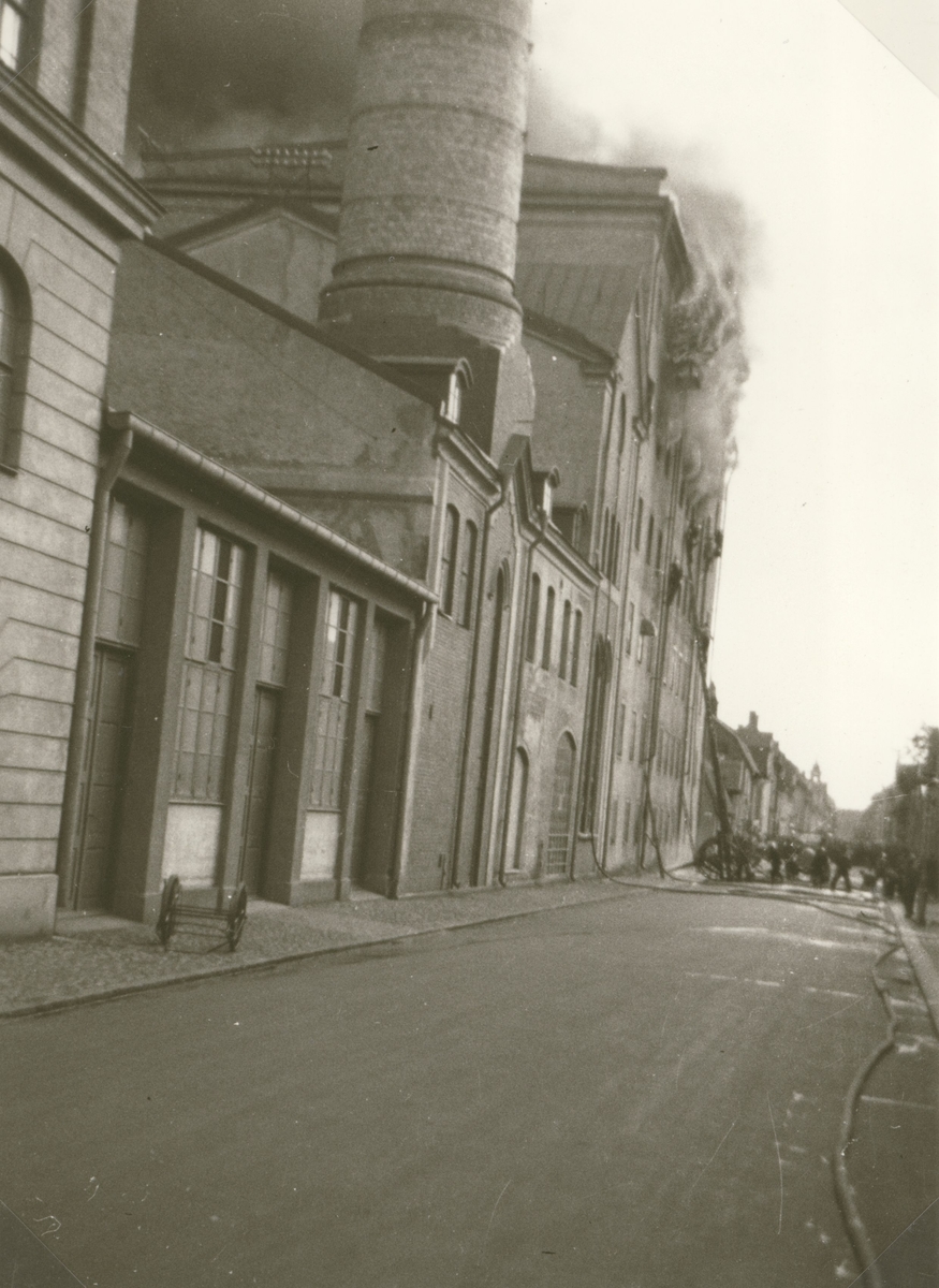 Ångkvarnsbranden 1935-07-06. Fasaden mot Södra Långgatan.