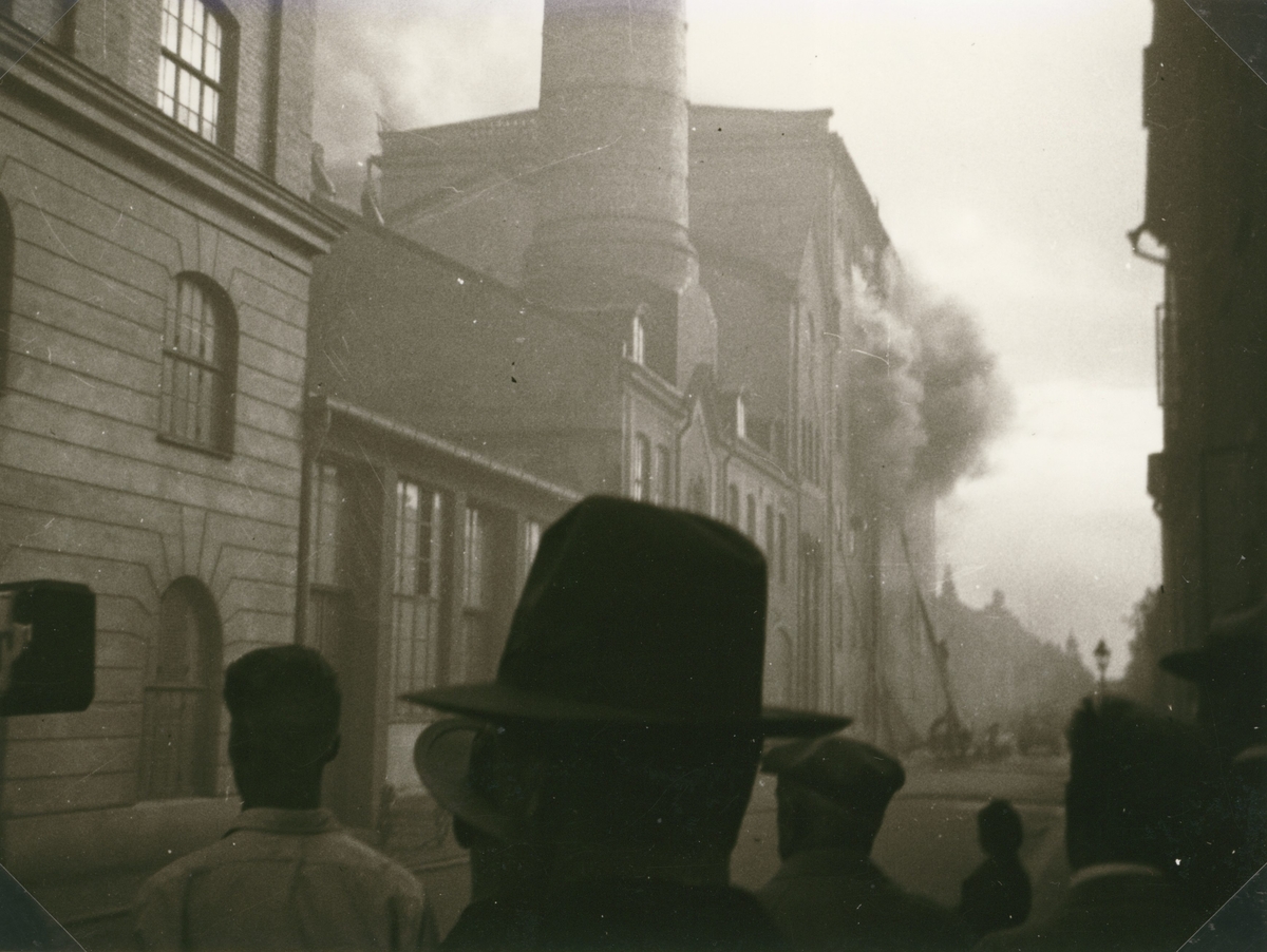 Ångkvarnsbranden 1935-07-06. Fasaden mot Södra Långgatan.