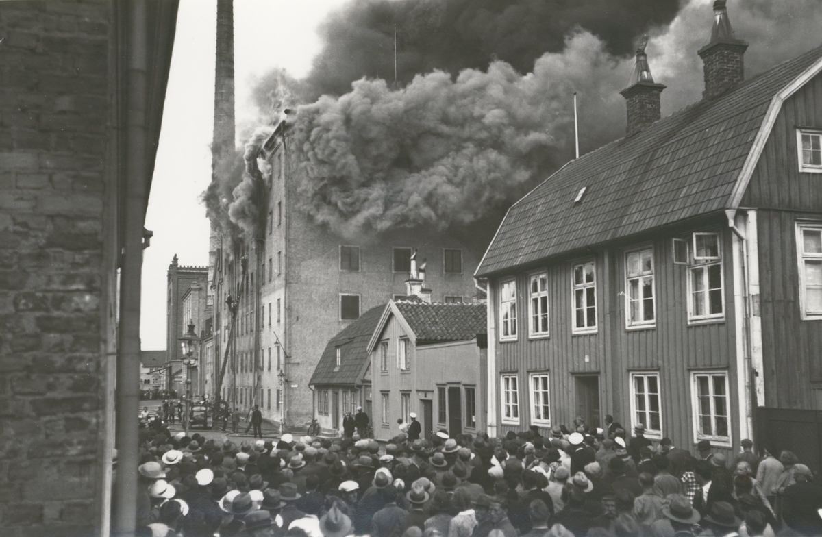 Ångkvarnsbranden 1935-07-06. Fasad mot Södra Långgatan.