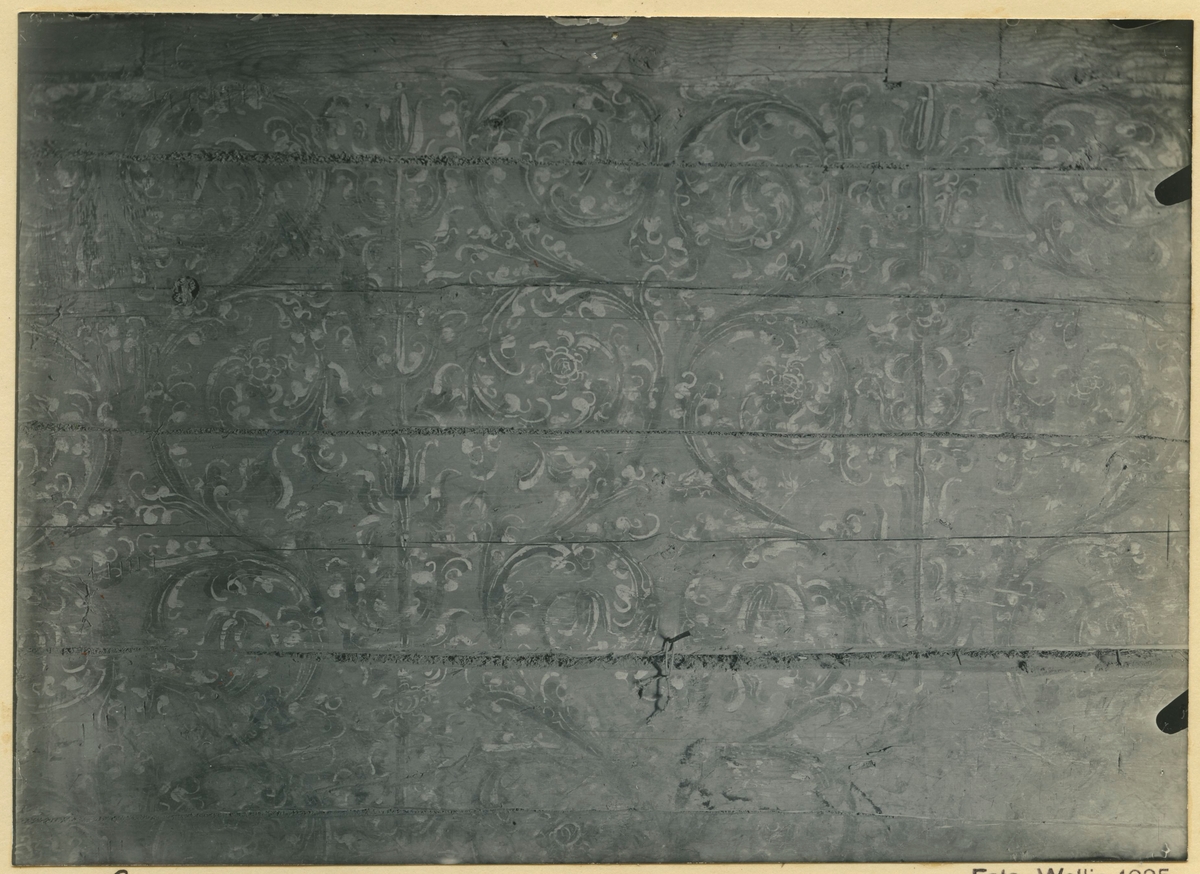 Västra flygeln. Målad ornering direkt på timmerväggen i förstugan.