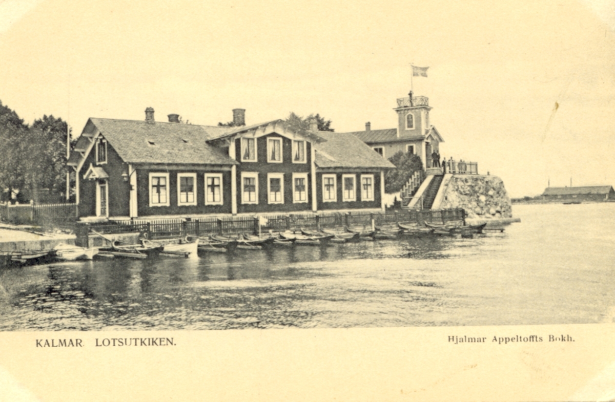 Gamla lotsutkiken på Kattrumpan. I bakgrunden syns en byggnad på Laboratorieholmen.