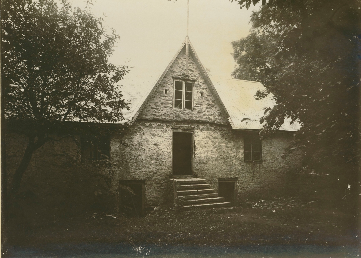Flygelbyggnad av kalksten. En våning samt vind. Djupa källare på sidorna om trappan. Åt båda hållen en frontespis som tillkommit senare. Taket är täckt med spån. Väggarna brukslagna. Den är försedd med en hög fritrappa med stenstolpe. Till vänster en spannmålsbod.