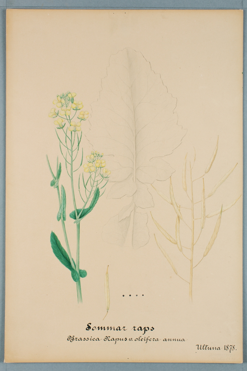 Sveriges kulturväxter. Illustration utförd av Henriette Sjöberg. Sommarraps. Odlad Ultuna 1878.