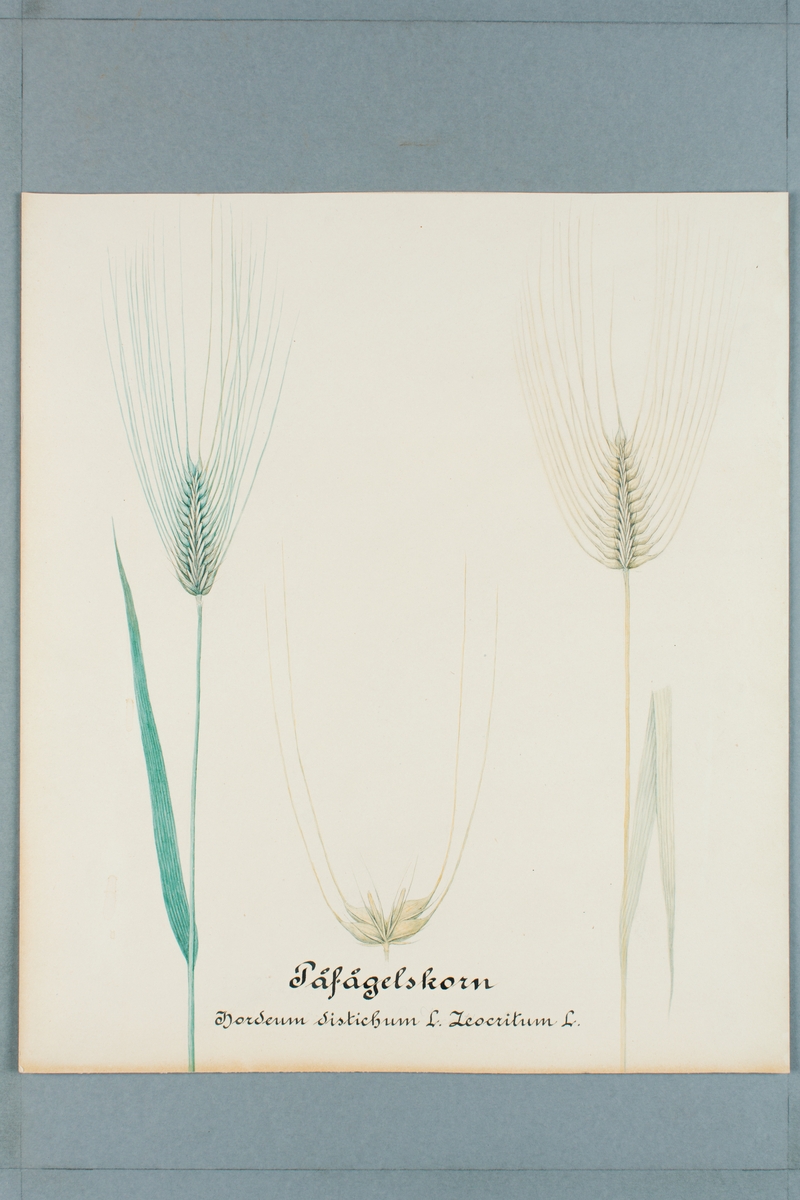 Sveriges kulturväxter. Illustration utförd av Henriette Sjöberg. Korn, Påfågelskorn. Odlingsplats och datering saknas.