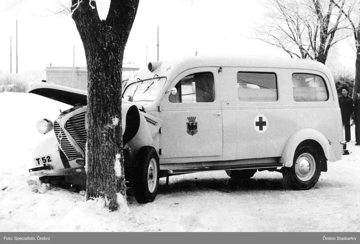 Ambulans i närkontakt med träd, Örebro län, januari 1951