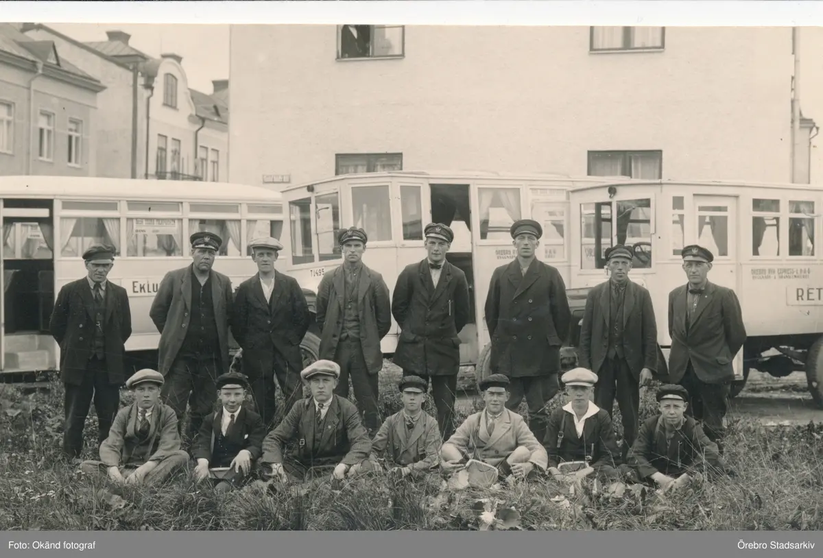 Halva personalstyrkan framför delar av vagnparken, 1926