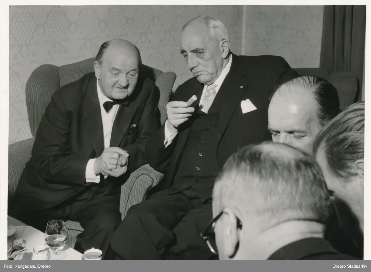 Otto E. Andersen berättar vid styrelsemiddag på Örebro Trafik AB, 1960-tal