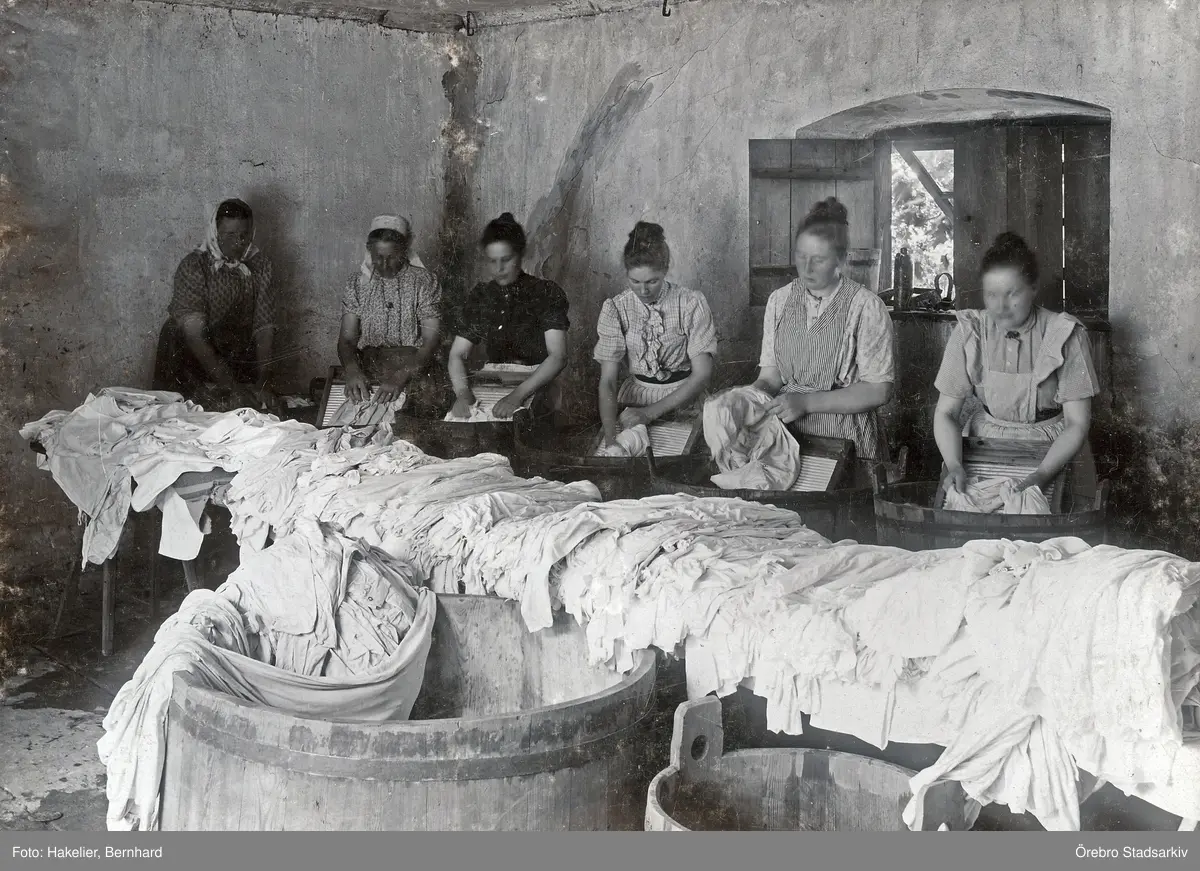 Tvätterskor i mejeribyggnaden på Karlslunds gård, 1890-tal