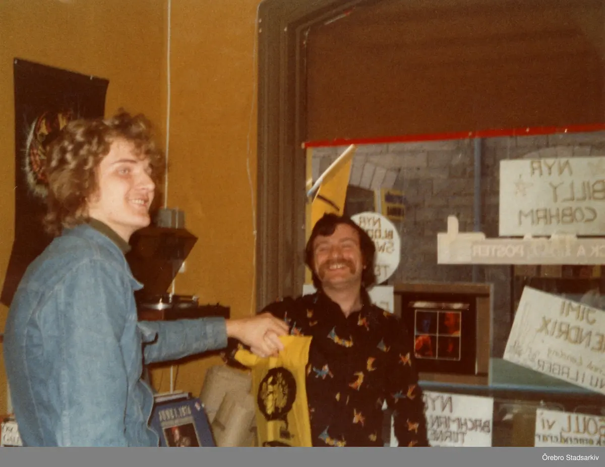 Skivförsäljning till kund i musikaffären LP-skivan, 1974
