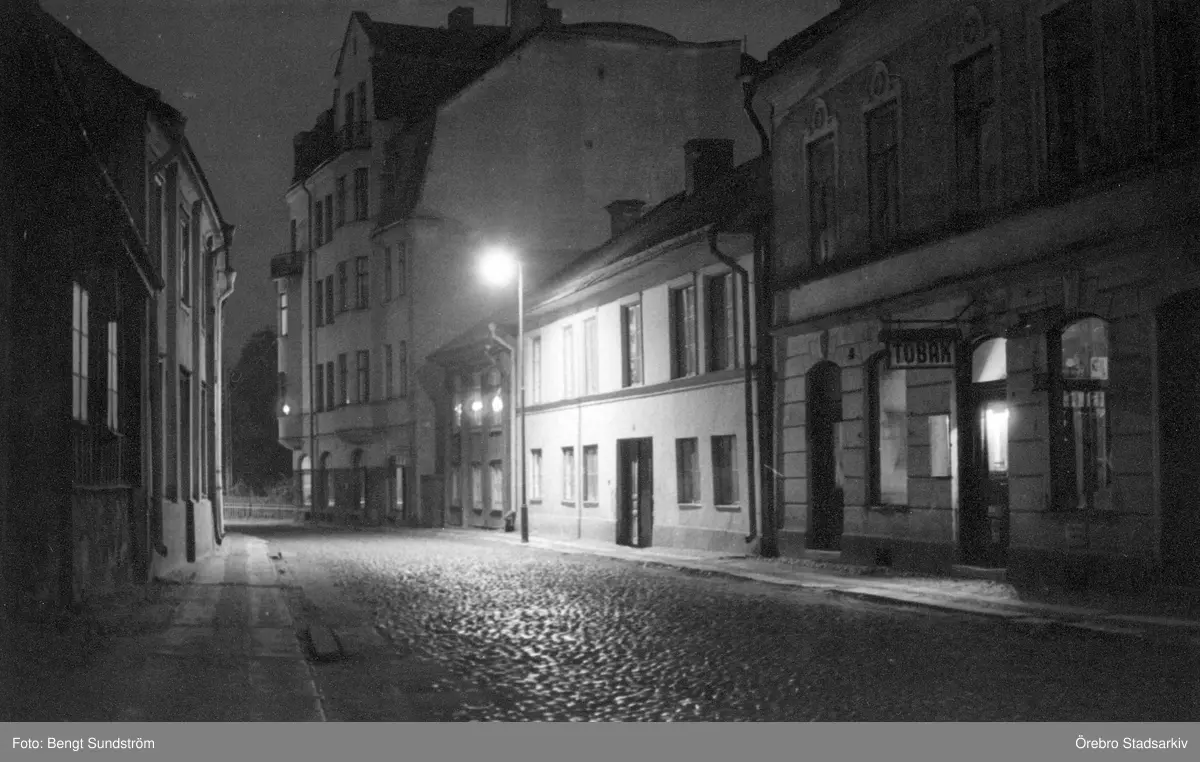 Nattbelysning på Kyrkogårdsgatan söderut, 1955