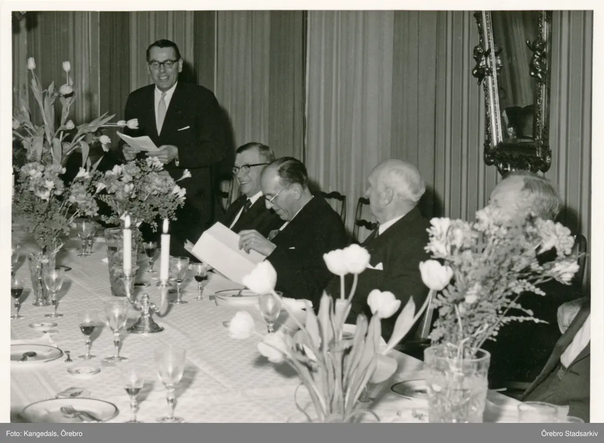 Fallenius håller tal på styrelsemiddag på Örebro Trafik AB, 1960-tal