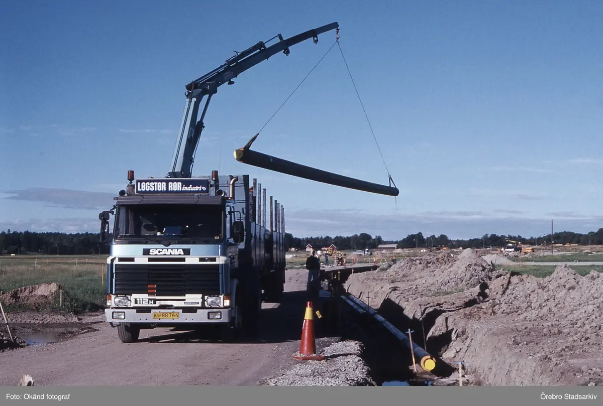 Nedläggning av rör för fjärrvärme på Gustavsviksfältet, augusti 1990