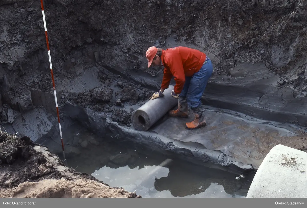 Läggning av fiberduk på Gustavsviksfältet, 1990