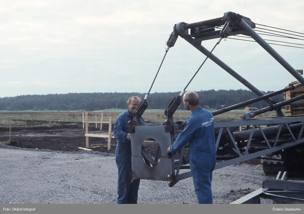 Uppsättning av maskinen för pålning på Gustavsviksfältet, 1990-09-04