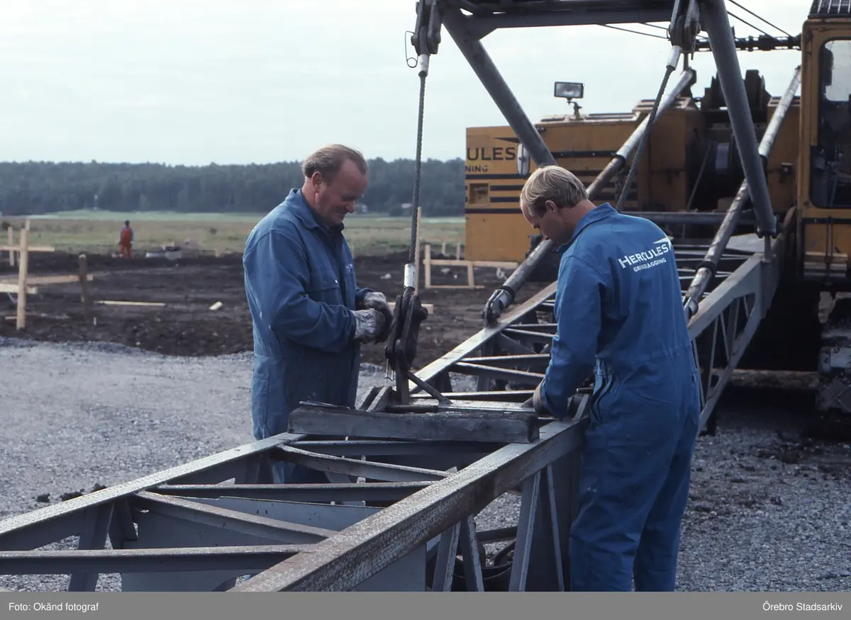 Uppsättning av maskinen för pålning på Gustavsviksfältet, 1990-09-04