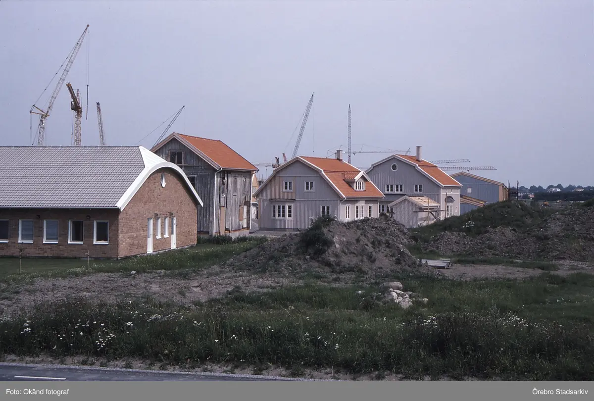 Gamla flyghangaren bredvid nya stadsvillor i Ladugårdsängen, 1991