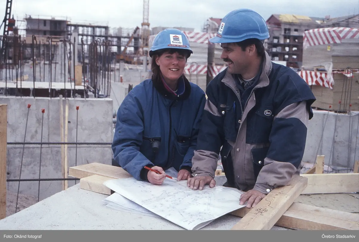 Kontroll mot ritning vid byggnation av Ladugårdsängen, 1991