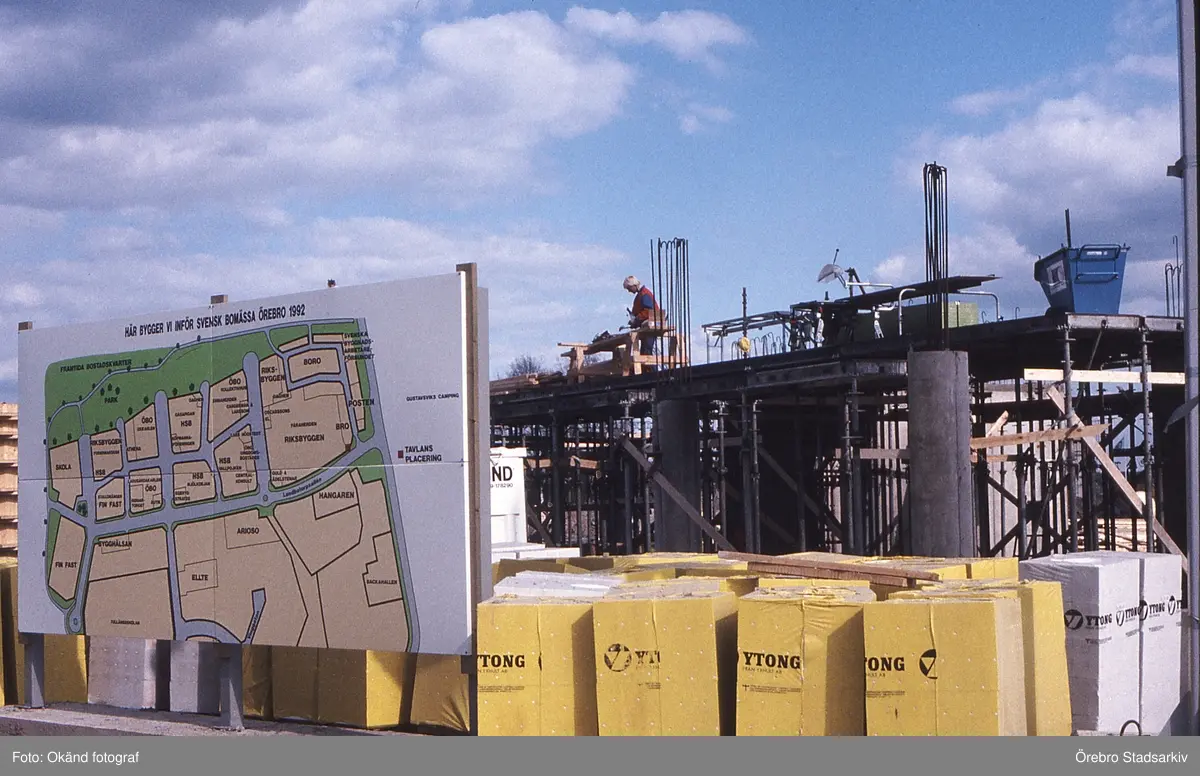 Planeringstavla framför byggnation av Ladugårdsängen, 1991