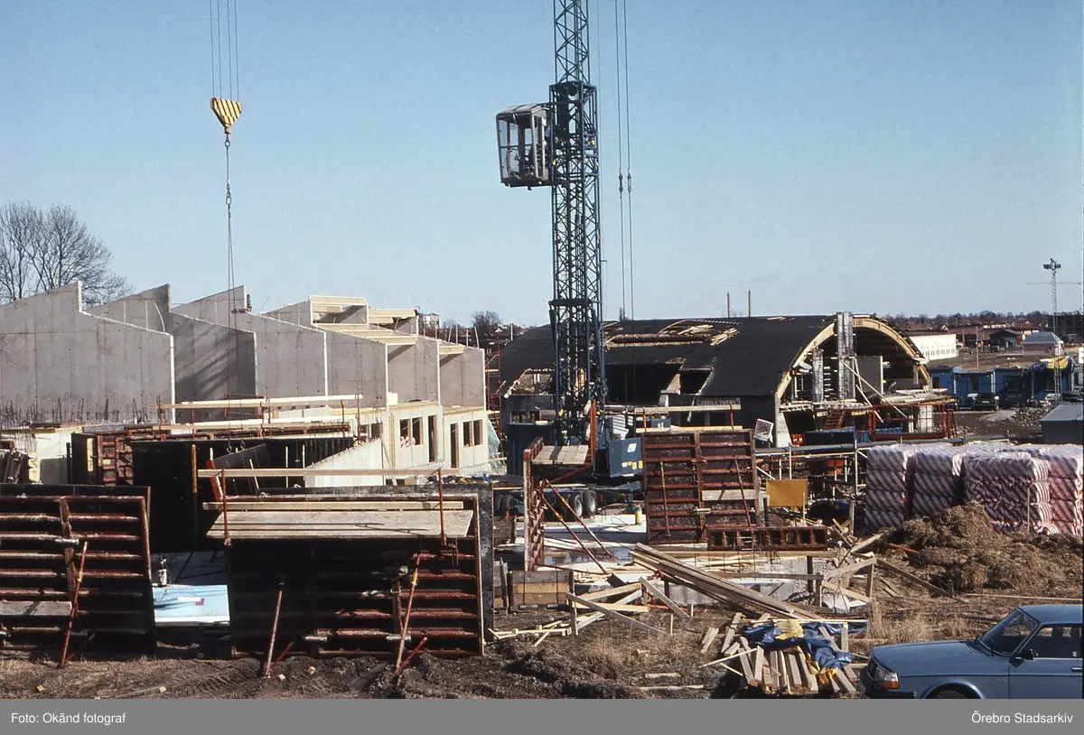 Byggnation vid gamla hangaren i Ladugårdsängen, 1992