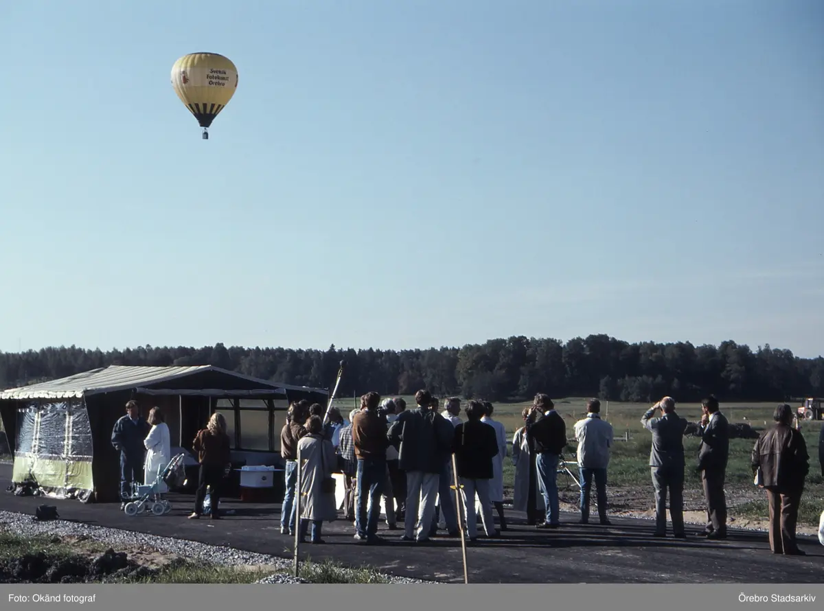 Grupp samlade inför första spadtaget i Ladugårdsängen, 1990