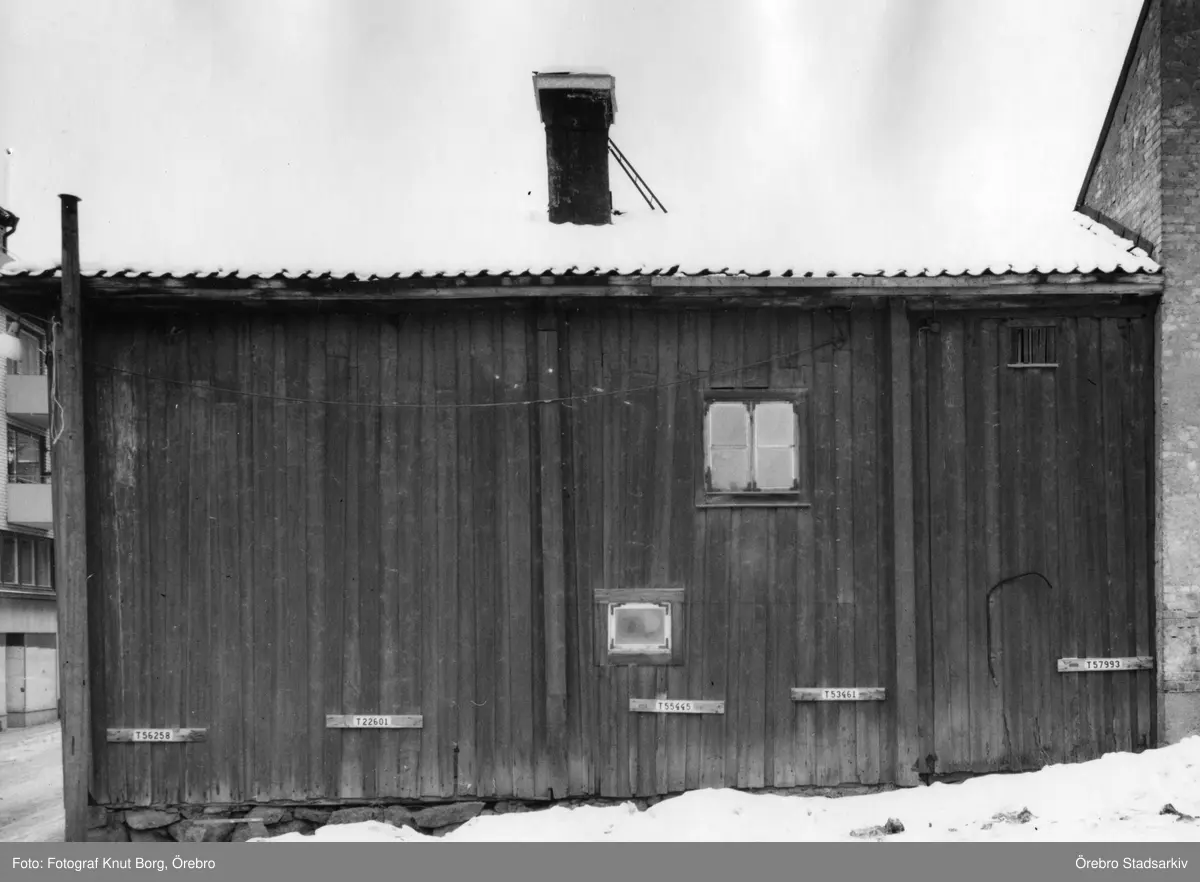 Trähus med uppmärkta parkeringsplatser på Gamla gatan 15, 1967