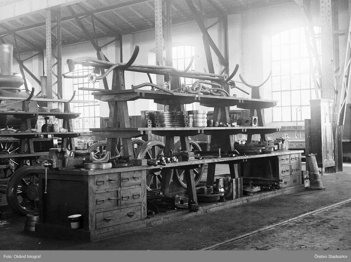 Hylla för lokdelar i uppsättningsverkstaden vid centralverkstäderna, 1905