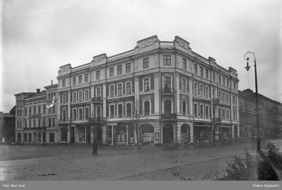 Stockholms handelsbank i hörnhus vid Stortorget i Örebro, ca 1900