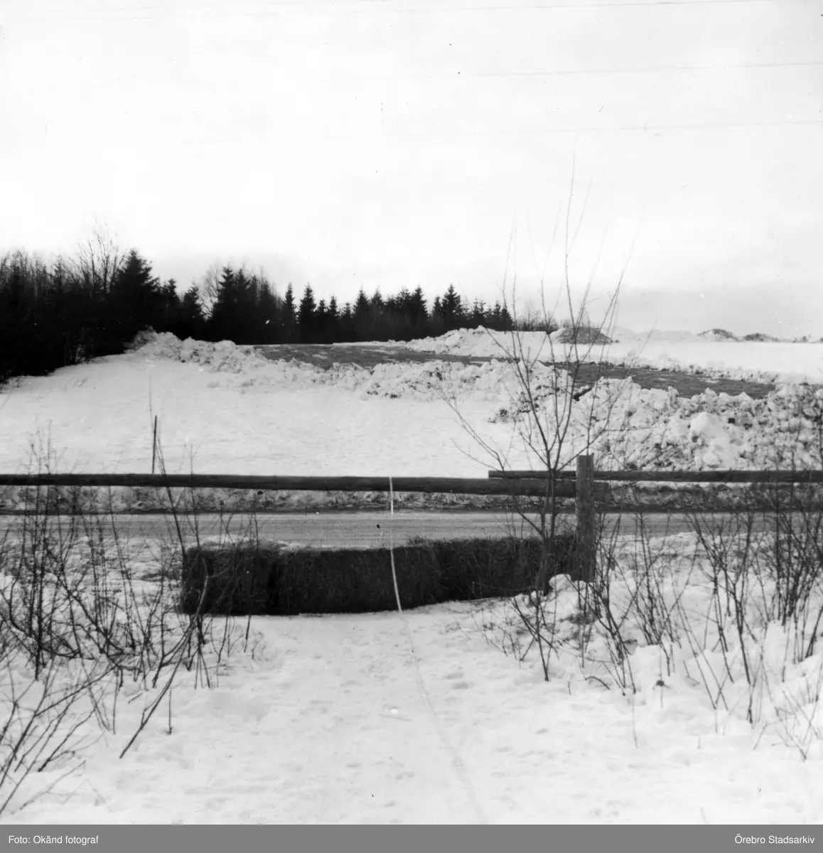 Tefatsbacken i Ånnaboda med skyddande höbalar, 1965-02-10