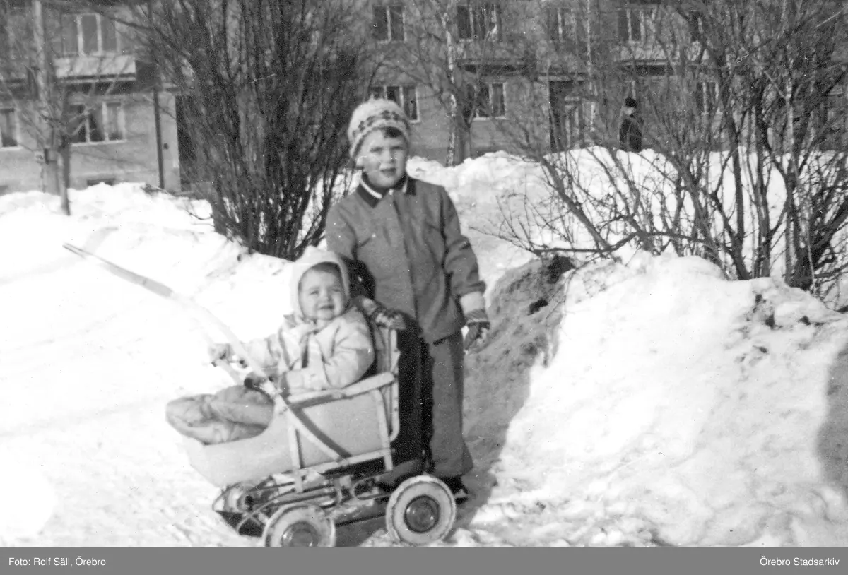 Syskonpar på promenad i snön, Hertig Karls allé, 1946